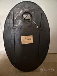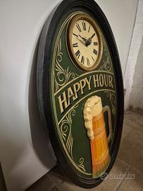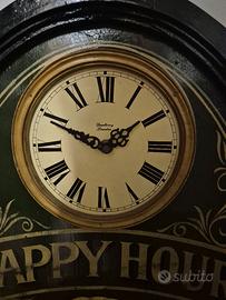 Bellissimo esemplare vintage originale. Grande dipinto ovale in legno a rilievo con orologio della Country Corner.