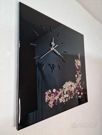 Orologio da parete realizzato a mano in resina epossidica e fiori. Il meccanismo dell'orologio è di tipo silenzioso.