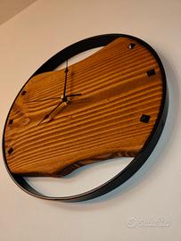 orologio da parete artigianale in ferro e legno con chiodi ferro battuto. diametro 36 cm. disponibili altri modelli.