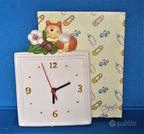 SIMPATICO E COLORATO OROLOGIO IN CERAMICA PER ARREDARE LA STANZA DI UN BAMBINO. MARCA "ARGENTI PREZIOSI".