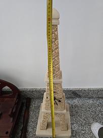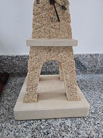 Orologio che riproduce la forma della Torre Eiffel, realizzato in pietra leccese. Base 22 cm Altezza 73 cm