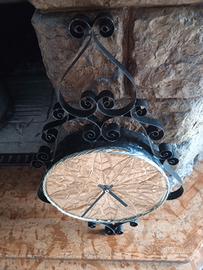 Materiale e Stile:L'oggetto presenta una struttura esterna in ferro battuto nero con riccioli e volute decorative, tipiche dell'artigianato artistico in ferro. Lo stile suggerisce un'influenza classica , potenzialmente vintage o antico.