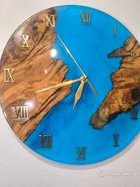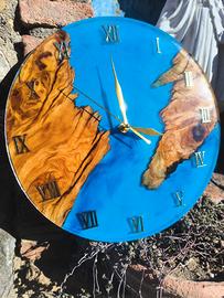 orologio da parete realizzato in resina epossidica e legno d'ulivo trattato diametro 33cm