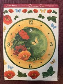 Orologio in vetro da decorare, pronto per essere personalizzato a decoupage. Inclusa carta con opzione di due soggetti. Inclusa batteria da 1,5 V.