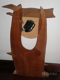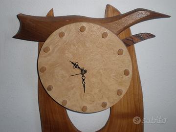 Causa inutilizzo vendo orologio Civetta in legno con dimensioni 53x33cm: la sovrapposizione di elementi diversi per forma e colore creano il corpo del volatile, e le zampette ne permettono di appoggiarlo in posizione verticale.