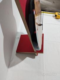 orologio fatto da me in legno di ulivo e resina nera con indici a bastone di colore bianco e segnatura. dimensioni diametro cm23 spessore cm2