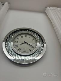 Orologio da parete rotondo, con diamanti sintetici e numeri romani.