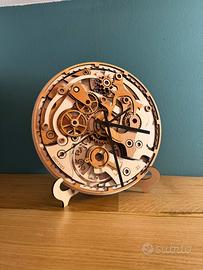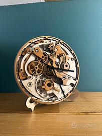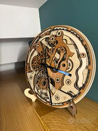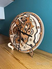 Orologio in legno di multistrato intagliato a laser, in legno di pioppo e noce tanganica. Ottimo come idea regalo Diametro circa 30 cm, spessore circa 5 cm. Realizzato interamente nella mi piccola attività da hobbista.