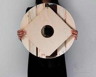 L'orologio è realizzato dall'assemblaggio di assi recuperate da pallet.