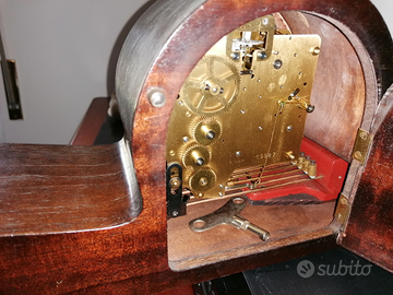 Orologio da camino / tavolo / credenza Mouthe Westminster Germany anni 40 carica manuale 8 giorni con suoneria disinseribile a martelletti riproducente Big Ben di Londra, bellissimo e caratteristico, meccanica affascinante e di eccellente fattura. Vista la delicatezza non spedisco questo articolo. Grazie