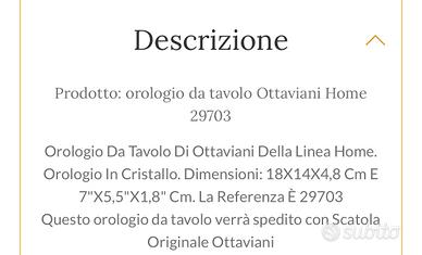 Orologio da tavolo Ottaviani in cristallo pari al nuovo, perfettamente funzionante completo di scatola