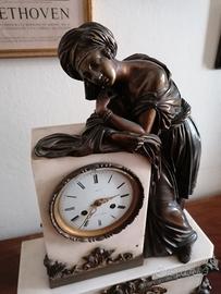 Importante parigina di metà 800'in bronzo e marmo dalle generose dimensioni. Il meccanismo è da revisionare, molto bella la figura di donna. Considerato il peso e la dimensione, sarebbe preferibile il ritiro a mano, formula visto e piaciuto.