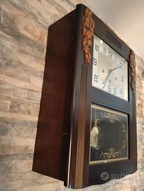Orologio a pendolo meccanico da parete con melodia Westminster/BigBen con rintocchi ai quarti, mezz'ore e le ore, con fermo suoneria e chiave di ricarica. Misure 52 x 41 x16.