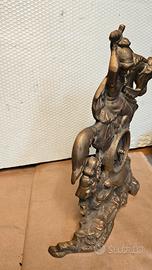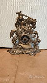 orologio in ottone angolare per spazi ristretti raffigura San Giorgio a cavallo orologio elettronico non a molla.