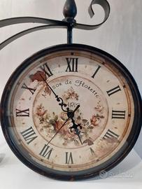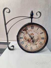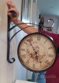 Orologio da parete bifacciale orientabile diam. 24 cm staffa in ferro come nuovo