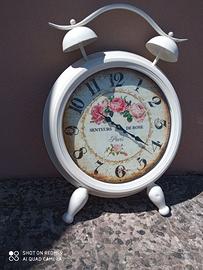 Orologio/sveglia decorativo da parete o pavimento shabby (munito di treppiede). Dimensioni: larghezza 50 cm - altezza 65 cm. Mai usato