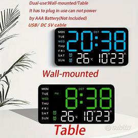 Orologio da Parete / Sveglia da Tavolo / Comodino con grande Display Digitale.