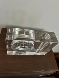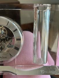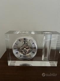 Bellissimo orologio da scrivania in cristallo con portapenne di Ottaviani