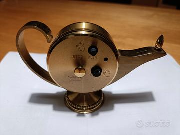 orologio sveglia marca Swisa made in Svizzera al quarzo forma di lampada di Aladino colori oro modello vintage