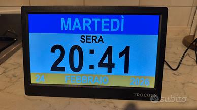 Vendo grande orologio digitale usato pochissimo praticamente nuovo, causa inutilizzo. Grande display con possibilità di allarmi/sveglie personalizzati e con 6 diverse modalità di visualizzazione dell’orologio. Possibilità di regolazione con telecomando. Molto utile anche per anziani.