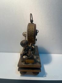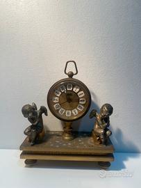 Orologio da tavolo in stile Impero / Biedermeier, fine ’800 – inizi ’900, in metallo dorato/bronzo con putti laterali e quadrante a numeri romani, con funzione di sveglia.