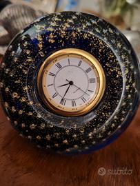 Pezzo di design. Orologio da tavolo firmato Venini in vetro di murano e foglia oro. Colore blu. Anno 1998. Ottime condizioni
