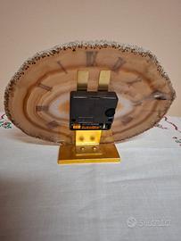 Bellissimo orologio da appoggio, in agata naturale, di forma particolare, base in ottone e lancette in ottone e rame, misura 22x16 cm. circa, perfettamente funzionante prezzo €80,00