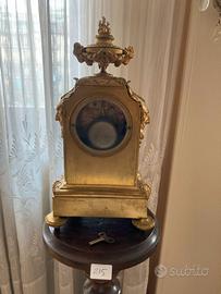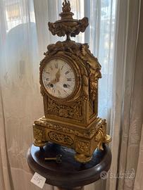 Orologio da mensola in metallo dorato, con decorazione a mascheroni