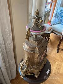 Orologio da tavolo in metallo dorato e quadrante in ceramica