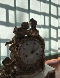 Orologio antico in bronzo dorato con basamento in marmo bianco e decori che rappresentano venere e cupido. SPEDIZIONE ORGANIZZATA DA ME CON CORRIERE ASSICURATO EXPRESS INCLUSO NEL PREZZO