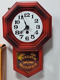 - Meccanismo a carica manuale con chiave. - Pendolo visibile. - Decorazione Regulator sul vetro del pendolo.