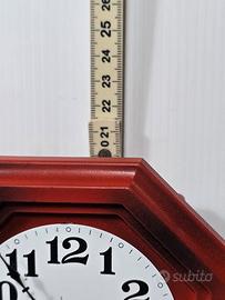 Orologio da parete a pendolo vintage meccanico carica a corda con chiave con cassa di colore rosso e finitura anticata. l'orologio è un fondo di negozio con scatola originale