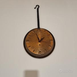 Orologio vintage da muro a forma di padella in rame e ferro battuto il manico.