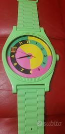 Orologio vintage anni 90 in colore VERDE BRILLANTE usato funziona a batteria pile. Alto circa 120cm Largo circa 50cm
