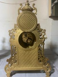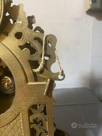Orologio parigina Lancini in bronzo dorato, suona le ore e le mezz'ore, movimento meccanico con caricamento a chiavetta, altezza: 58 cm, funzionante e in ottime condizioni.