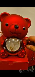 Orsetto rosso contenente rosa e collana, altezza 16 cm circa,completo di scatola e confezione regalo . Nuovissimo . Se si gira il cuoricino d orato, da rosa passa a collana nel ventre dell orsetto. Sfera rimovibile.