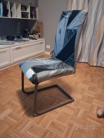 Vendo nr. 6 sedie a sbalzo funzionali con pelle di rivestimento della seduta squamata, ma con fodera di copertura.