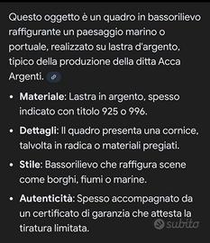Quadro in basso rilievo su lastra d argento Ottaviani