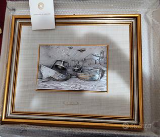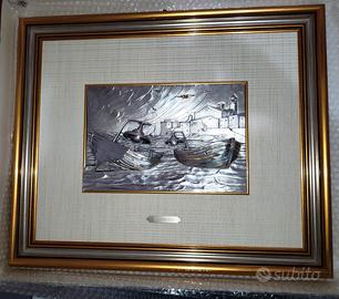 Quadro OTTAVIANI altorilievo, raffigurante le LAMPARE, in argento 800/1000, misure 22 x 32, con cornice in legno misure 52 x 62.