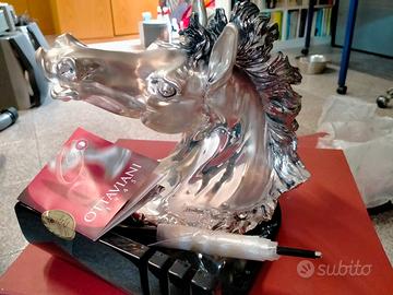 scultura da tavola porta biglietti e porta penne a forma di testa di cavallo di Ottaviani
