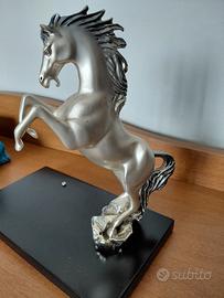 cavallo rampante Ottaviani, su base di legno nero. argento