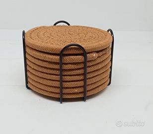 Stile rustico moderno che si adatta a qualsiasi arredamento e bevuta. Insieme ai sottobicchieri la confezione comprende un porta-sottobicchieri in metallo nero antiruggine e anti-graffio per riporli incolonnati quando non si usano