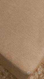 Ottoman pouf di design moderno contemporaneo, quadrato con bordi leggermente arrotondati e rivestimento con trama grossolana beige/tortora. Alto valore di listino. Nuovo