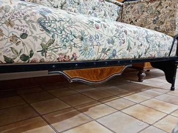 Splendida ottomana d’epoca stile Luigi Filippo con pannelli in metallo decorato, pezzo raro e restaurato. Tapezzata con materiali nuovi, pronta per essere utilizzata senza ulteriori interventi. Già smontata per agevolare il trasporto. Ritiro ad Alghero nei fine settimana.
