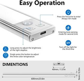 OUILA Luce Armadio LED con Sensore, 3 Temperature di Colore Luci led per Armadio Dimmerabile, USB-C Ricaricabile LED Armadio Senza Fili Luce Notturna Lampada Armadio per Cucina Guardaroba Armadi [Classe di efficienza energetica A]