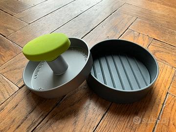Prodotto di qualità nuovo. Pressa per creare hamburger classici o ripieni da 200 gr, creata da Outdoorchef. Impugnatura in gomma antiscivolo sulla pressa, base formante in alluminio, estraibile così da poter estrarre gli hamburger formati senza romperli. L'accessorio utile per chi ama creare hamburger di persona, partendo dalla materia prima.