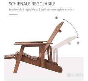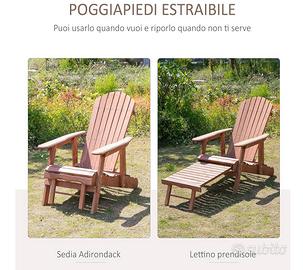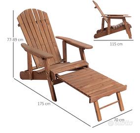 PRATICA: Sedia a sdraio Adirondack in stile rustico perfetta per giardino, balcone, veranda, terrazzo.
