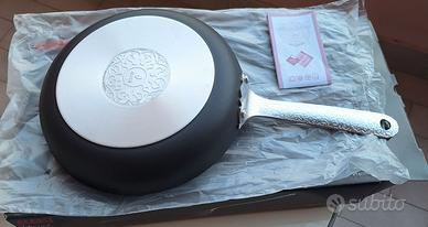 Padella Alessi Dressed diametro 28 con rivestimento antiaderente nero e manico lungo decorato in acciaio inossidabile 18/10 nuova in confezione originale.