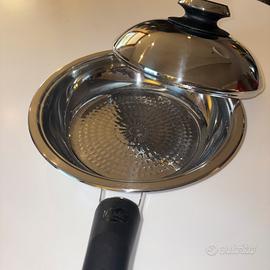 Padella AMC diametro 24, doppio fondo, nuova, mai usata, comprata due anni fa. Coperchio per termo cottura, manico estaibile. Acciaio inox