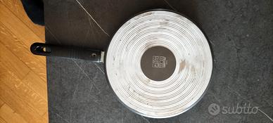 Vendo perché non adatta per induzione. Usata poco. Lievi segni di usura in foto. Le due parti si agganciano e permettono di girare la frittata senza utilizzare altri strumenti